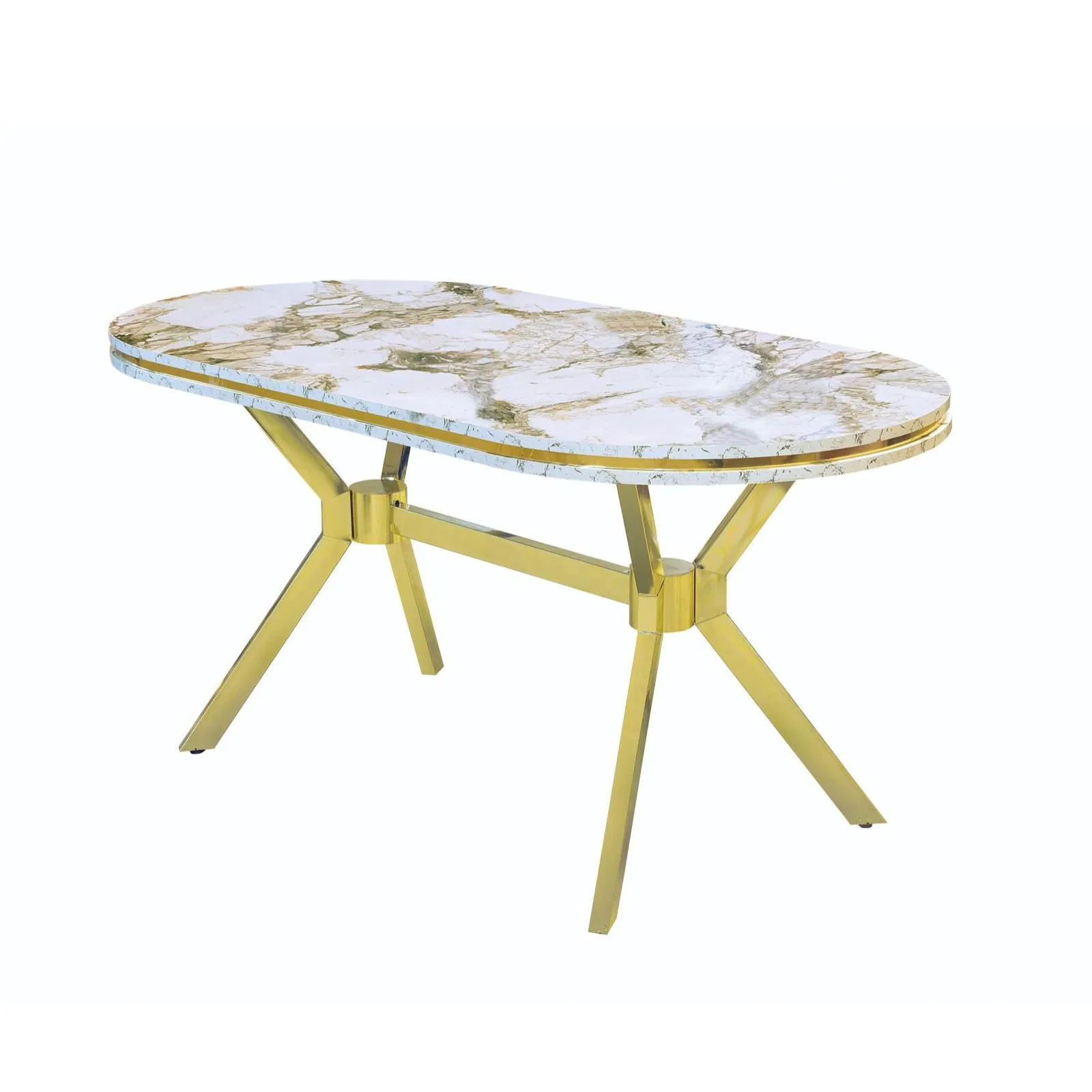 Set masa Timar cu 6 scaune, cadru auriu, marmura efes/bej
